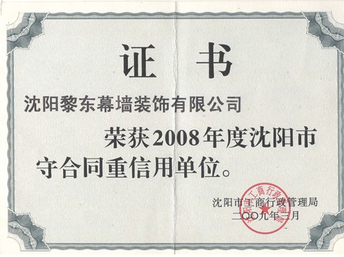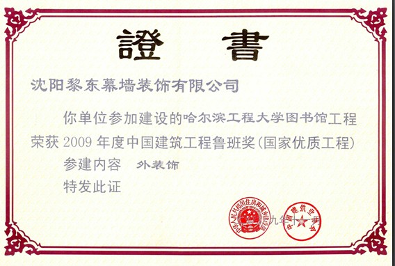 | 2009年獲優(yōu)秀品牌企業(yè) | 2009年度獲沈陽市守合同重信用證書 | 2009年獲哈爾濱工程大學魯班獎 |